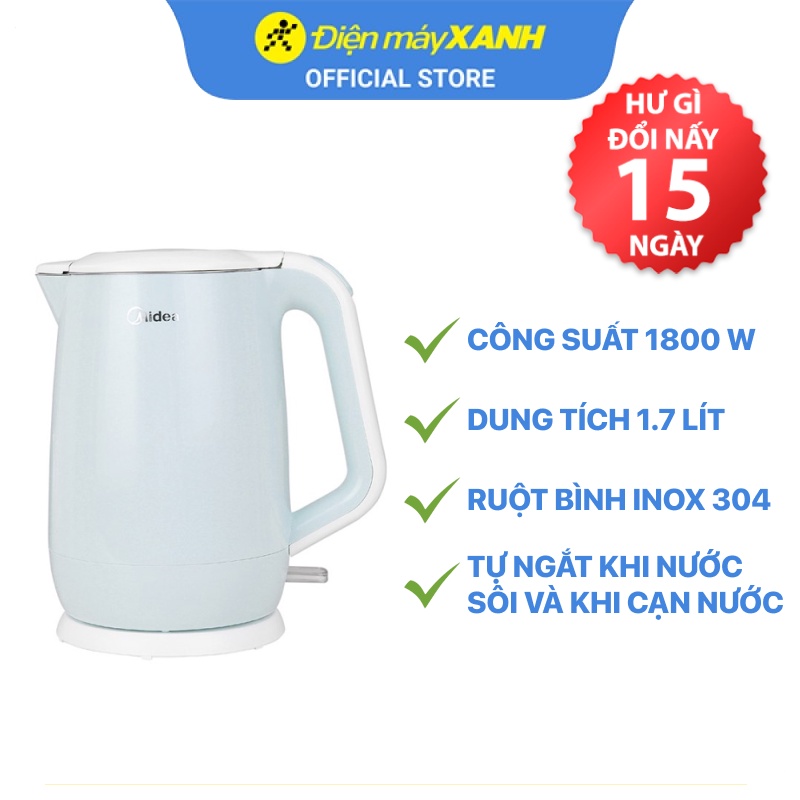 Bình đun siêu tốc Midea MK-17DC thiết kế hiện đại, đẹp mắt, đun nước nhanh sôi, dùng an toàn, hiệu quả, được nhiều người nội trợ tin dùng trong gia đình.