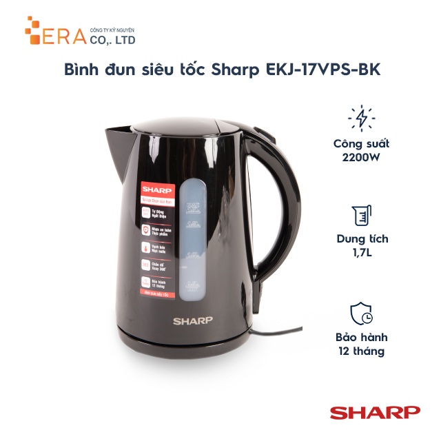 - Bình siêu tốc Sharp 1.7L EKJ-17VPS-BK có công suất lớn 1850-2200W- Dung tích 1.7L tiện pha mì, cà phê, sữa
