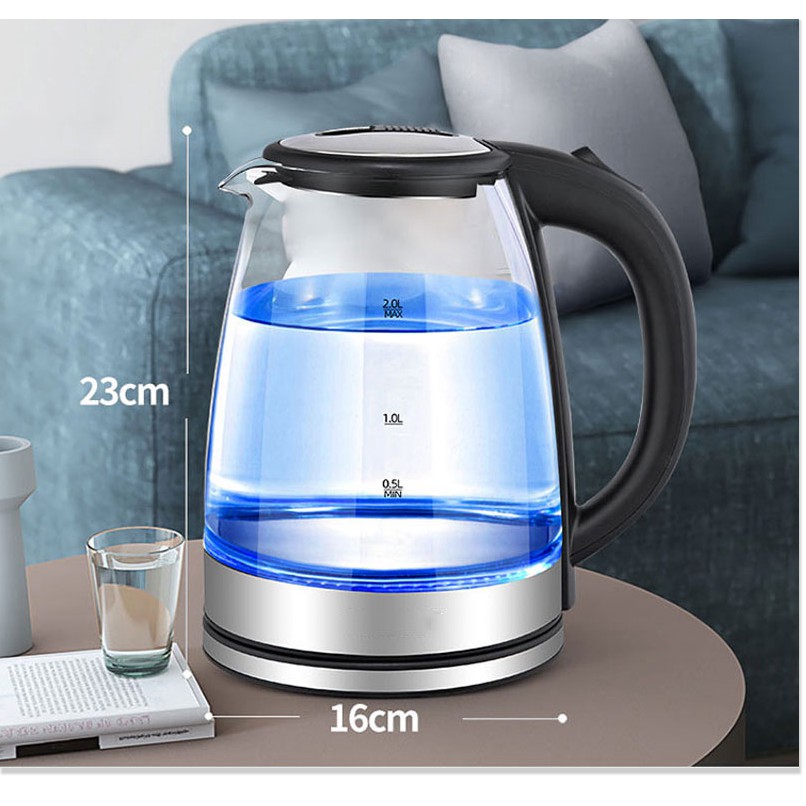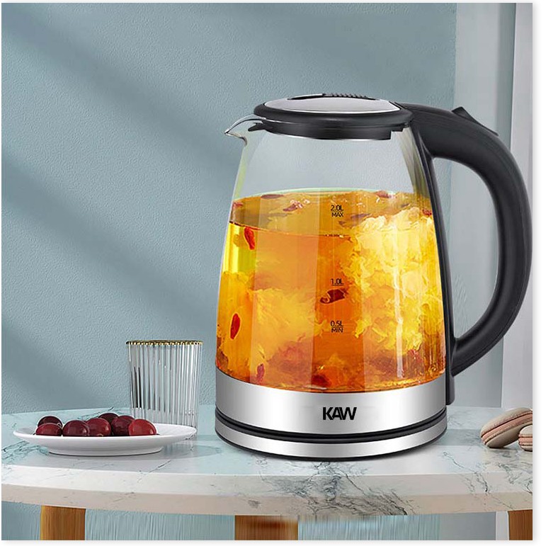 Bình Siêu Tốc Thủy Tinh KAW RK1818 ✔️Chính Hãng✔️ dung tích 2L, tiết kiệm điện, bình thủy tinh trong suốt, nước nóng siê
