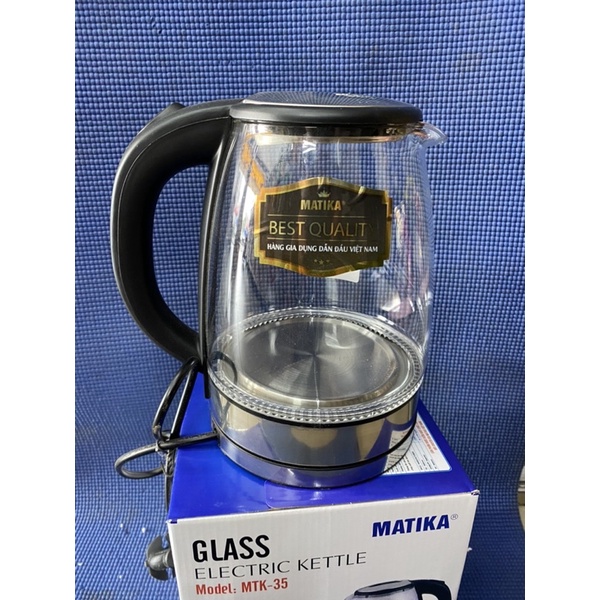 Ấm siêu tốc thủy tinh Matika MTK-35 thiết kế hiện đại trong suốt đun nước siêu nhanhVới thiết kế sang trọng, hiện đại với chất liệu thủy tinh trong suốt chịu nhiệt cực tốt, ấm siêu tốc thủy tinh Matika MTK-35 (1,8L) giúp đáp ứng dễ dàng mọi nhu cầu nước sôi cho cả gia đình.