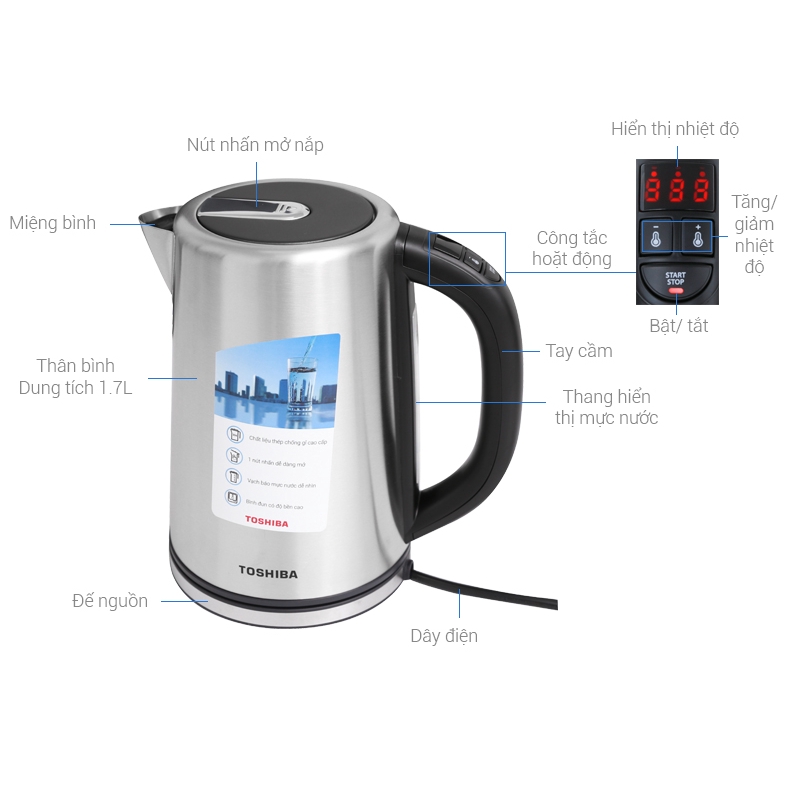 Thương hiệu: Toshiba | Xem thêm các sản phẩm Bình đun siêu tốc của ToshibaMô tả ngắn