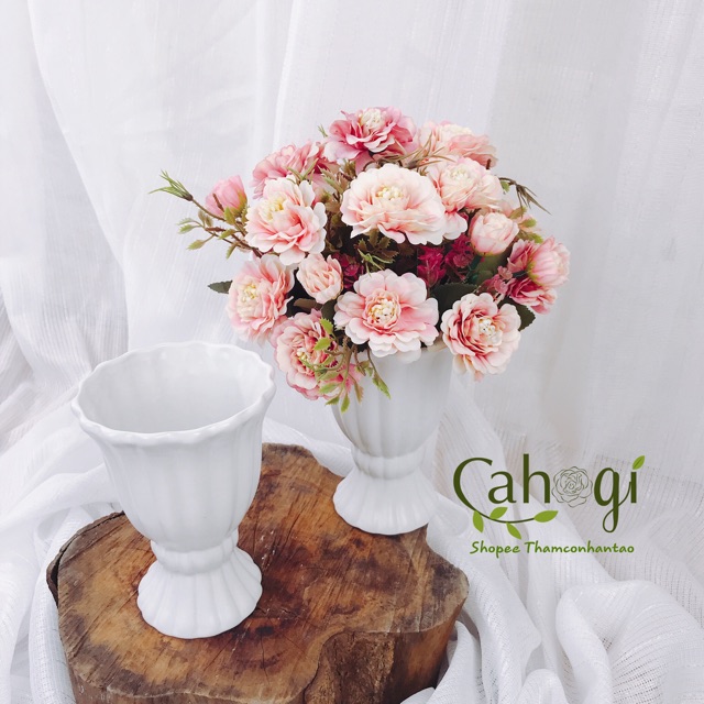 Sản phẩm là giá 1 chậu sứ trơn không bao gồm các phụ kiện khác (không bao gồm hoa)Kt: cao 14-15cm