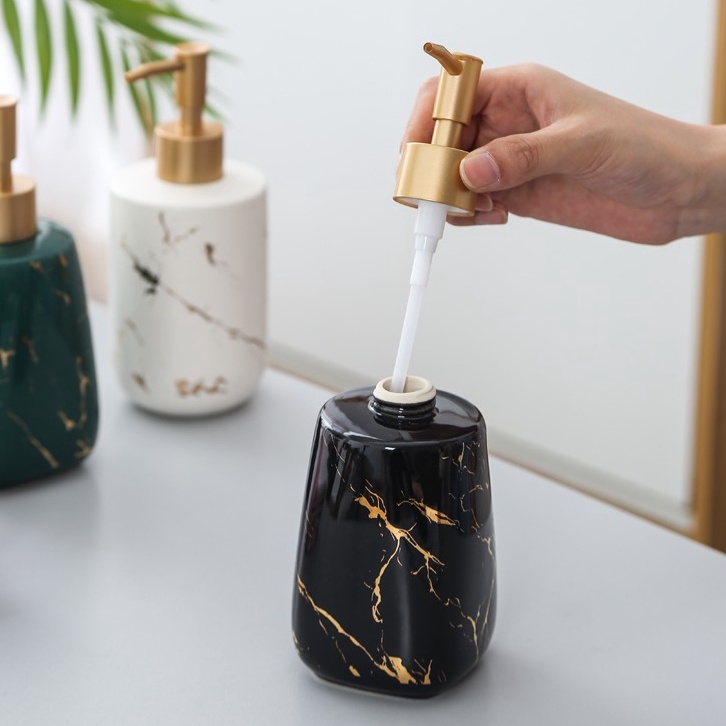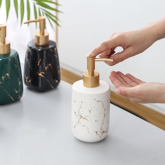 Nhà cửa & Đời sống > Đồ dùng phòng tắm > Kệ đựng xà phòng || Bình Sứ Đựng Nước Rửa Tay Dầu Gội Sữa Tắm Vòi Nhấn Cao Cấp 350mlCòn hàng