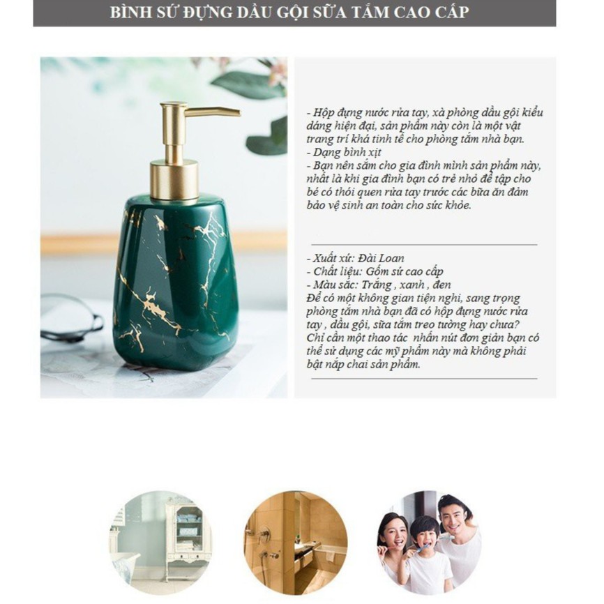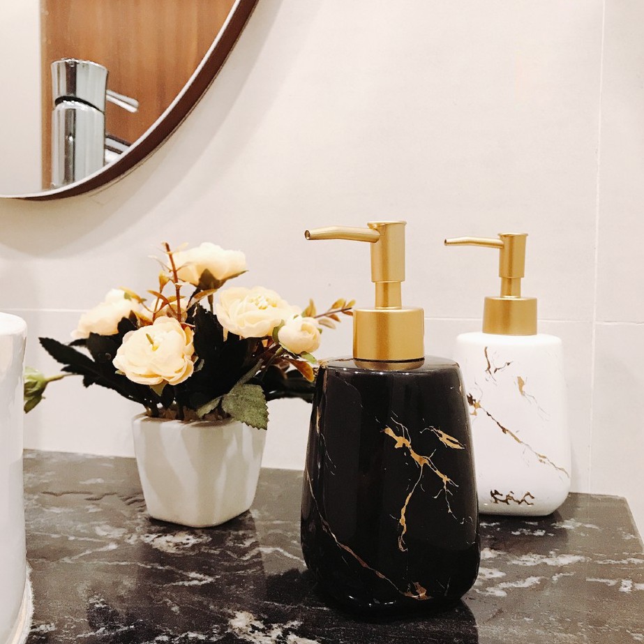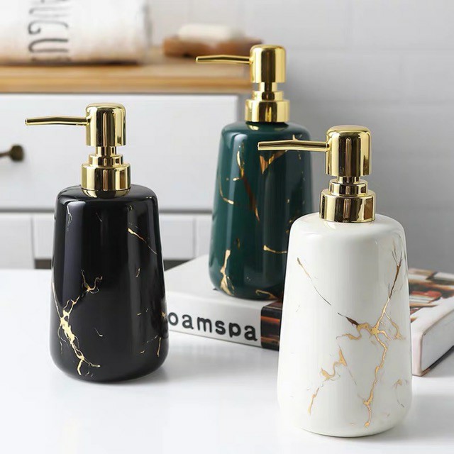 Shop hân hạnh kính chào quý khách! Rất mong nhận được sự ủng hộ từ quý kháchBình Sứ Đựng Nước Rửa Tay, Dầu Gội Sữa Tắm Họa Tiết Vân Cẩm Thạch Cao Cấp 350ml