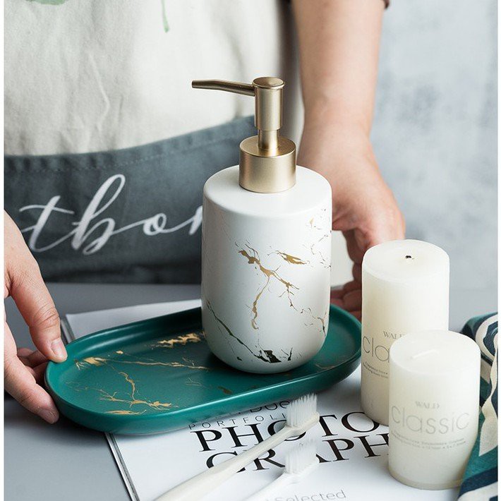 Nhà cửa & Đời sống > Đồ dùng phòng tắm > Kệ đựng xà phòng || Bình Sứ Đựng Nước Rửa Tay, Dầu Gội Sữa Tắm Họa Tiết Vân Cẩm Thạch Cao Cấp 350mlCòn hàng