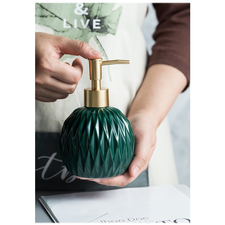 Bình Sứ Đựng Nước Rửa Tay Decor Nhà Tắm Vòi Nhấn 400ml Gốm Sứ Cao Cấp OENEN