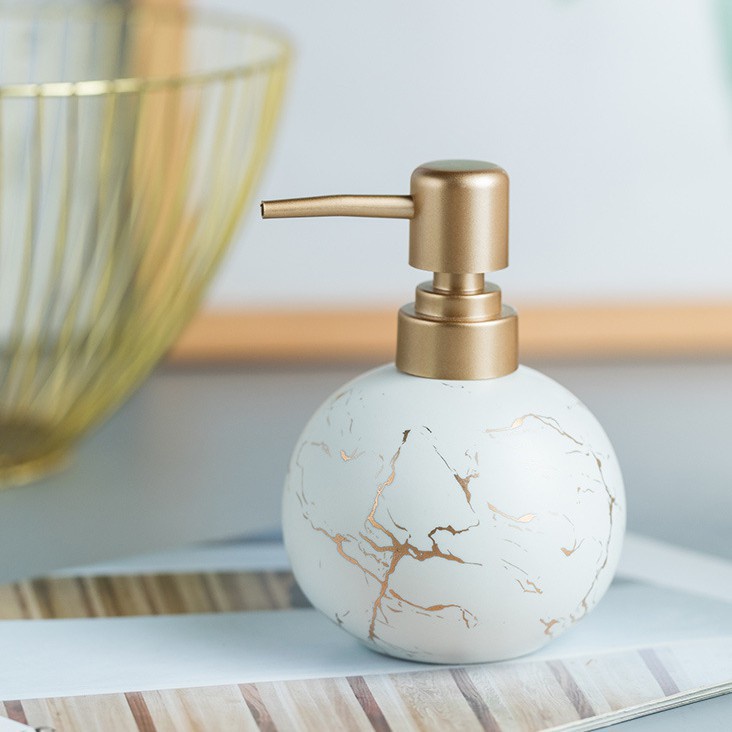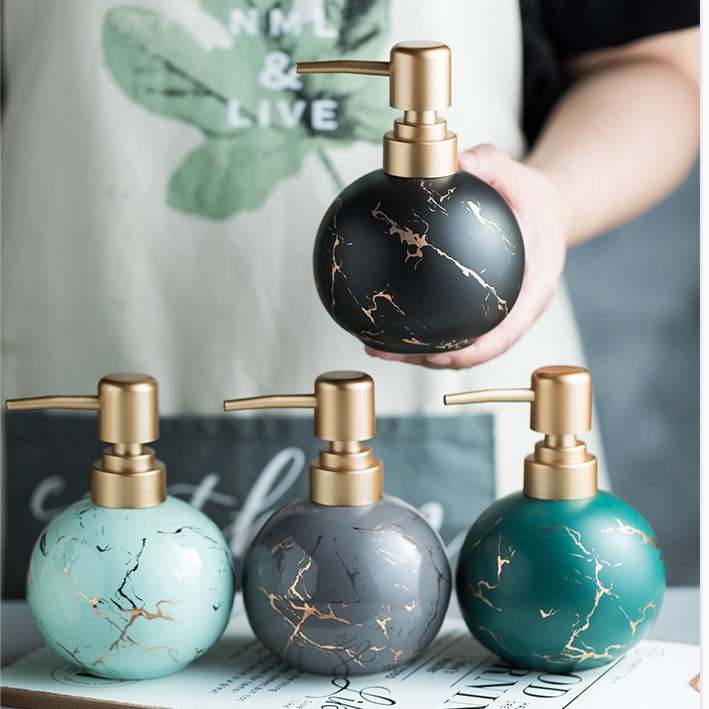 Nhà cửa & Đời sống > Đồ dùng phòng tắm > Kệ đựng xà phòng || Bình Sứ Đựng Sữa Tắm Dầu Gội BEECOOK Bằng Gốm Sứ Họa Tiết Vân Cẩm Thạch 300mlCòn hàng