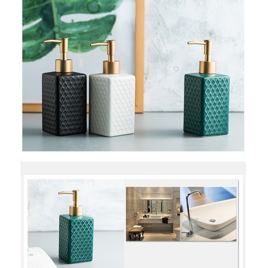 Nhà cửa & Đời sống > Đồ dùng phòng tắm > Kệ đựng xà phòng || Bình Sứ Đựng Sữa Tắm Dầu Gội, Chai Nước Rửa Tay Vân Đá Cao Cấp Dáng Vuông Sang TrọngCòn hàng