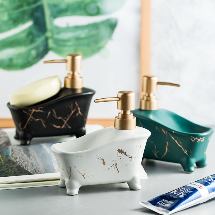 🔅🔅Bình sứ đựng xà phòng sữa tắm, dầu gội, nước rửa tay vân đá thiết kế 2in1🔅🔅Để có một không gian tiện nghi, sang trọng phòng tắm nhà bạn đã có bình đựng xà phòng rửa tay , dầu gội, sữa tắm hay chưa? Chỉ cần một thao tác nhấn nút đơn giản bạn có thể sử dụng các dung dịch xà phòng này mà không phải bật nắp chai sản phẩm.