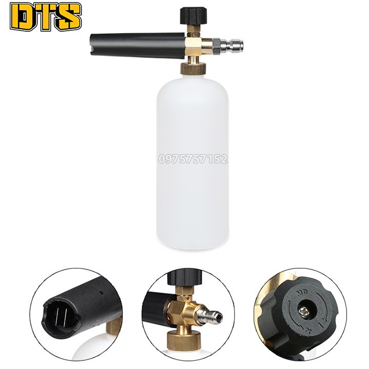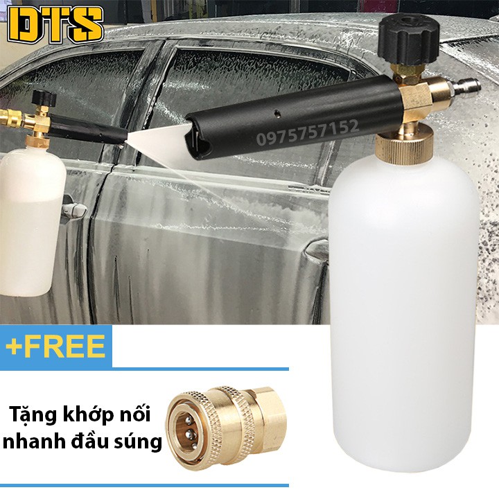 Bình tạo bọt tuyết lõi đồng 100% cao cấp gắn súng phun xịt rửa của máy rửa xe áp lực cao, máy xịt rửa cao áp