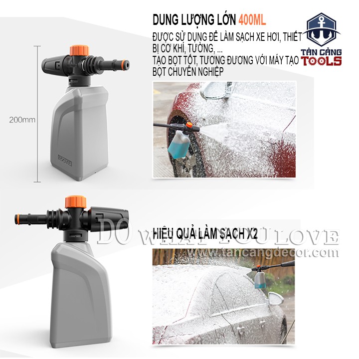 - Bình Tạo Bọt Tuyết Yili 400 ML là sản phẩm không thể thiếu khi sử dụng các dòng máy xịt rửa cao áp, máy rửa xe trong gia đình.