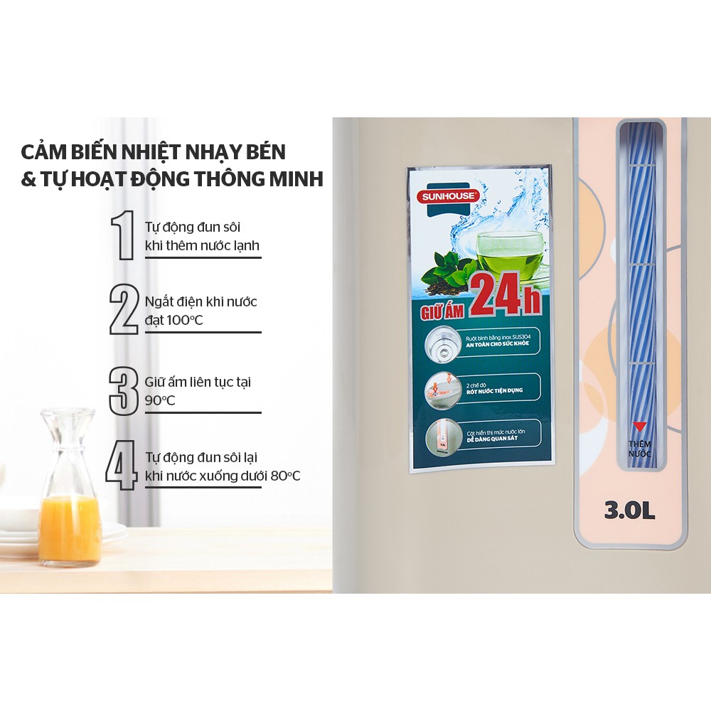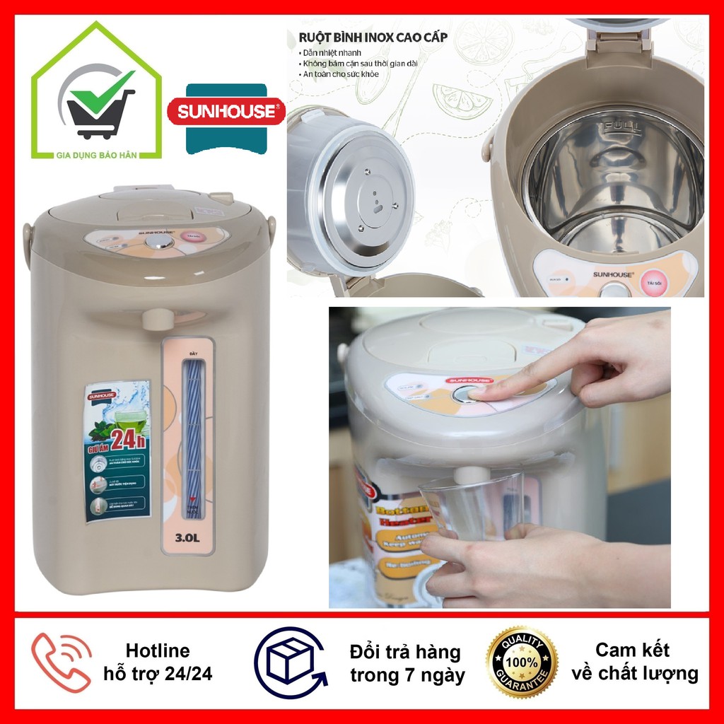 Thiết Bị Điện Gia Dụng > Đồ gia dụng nhà bếp > Ấm đun siêu tốc || [Mã ELHADEV giảm 4% đơn 300K] Bình Thuỷ Điện Cao Cấp Sunhouse SH1530 Dung tích 3 Lít - BH 12 ThángCòn hàng