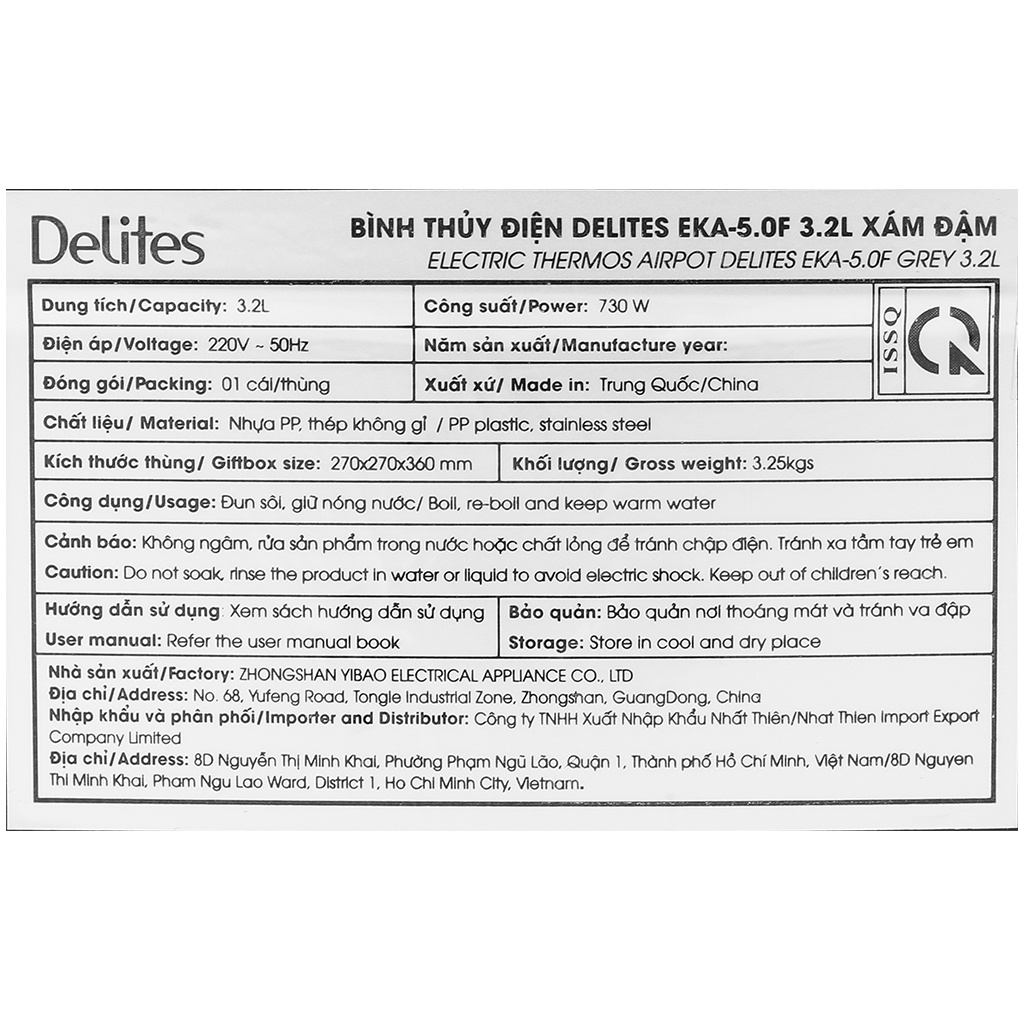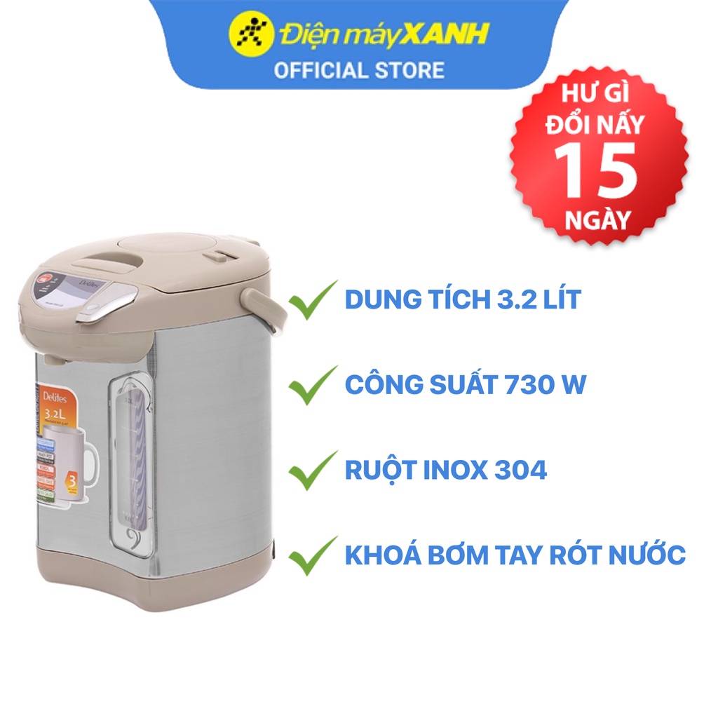 Thiết Bị Điện Gia Dụng > Đồ gia dụng nhà bếp > Ấm đun siêu tốc || [Mã ELMALL150 giảm 8% đơn 500K] Bình thủy điện Delites EKA-5.0F 3.2 lítCòn hàng