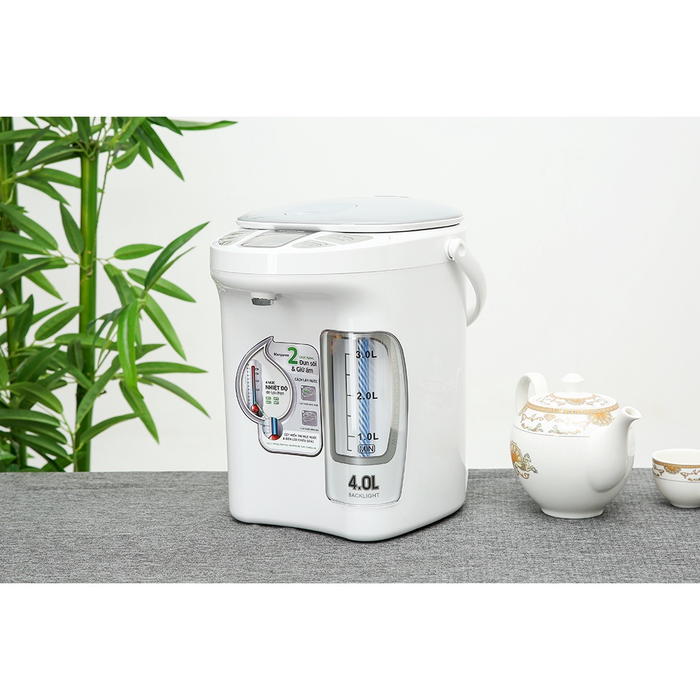 ● Với thiết kế màu trắng trang nhã, dung tích lớn lên đến 4 lít, đáp ứng nhu cầu dùng nước nóng cho gia đình đông thành viên, nhà có trẻ nhỏ, có nhu cầu dùng nước sôi lớnVỏ bình làm bằng chất liệu nhựa bền bỉ, thích hợp cho những người có nhu cầu di chuyển bình nhiều lần, ưa thích sự nhẹ nhàng, thuận tiện.