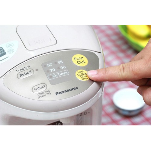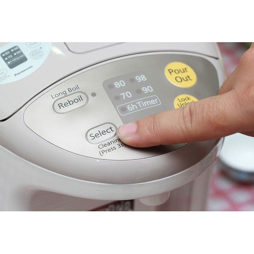 Bình thủy điện Panasonic hẹn giờ với thời gian đến 6 tiếng để canh thời gian có nước sôi sử dụng ngay khi cần.