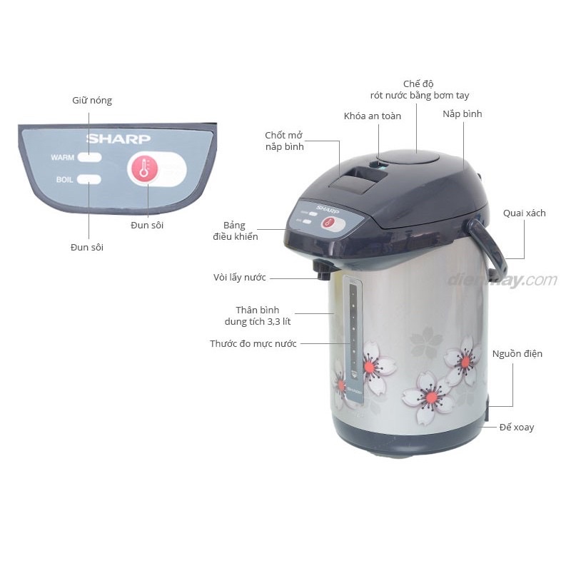 [Mã 154ELSALE2 giảm 7% đơn 300K] BÌNH THUỶ ĐIỆN SHARP THÁI LAN DUNG TÍCH 3,3L BẢO HÀNH 12 THÁNG