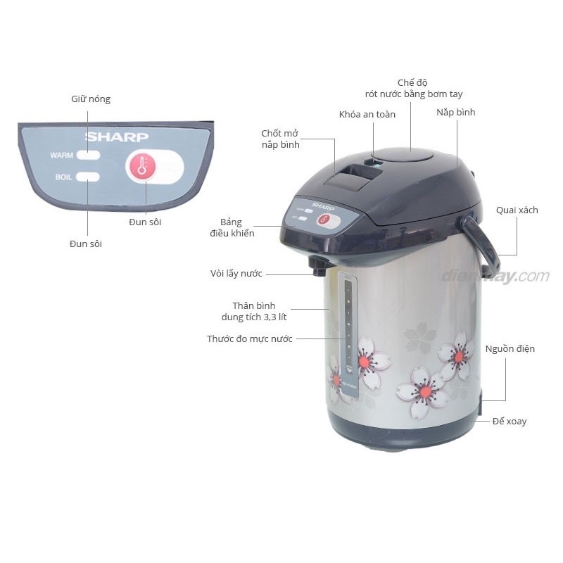 Giới thiệu BÌNH THUỶ ĐIỆN SHARP THÁI LAN DUNG TÍCH 3,3L BẢO HÀNH 12 THÁNG