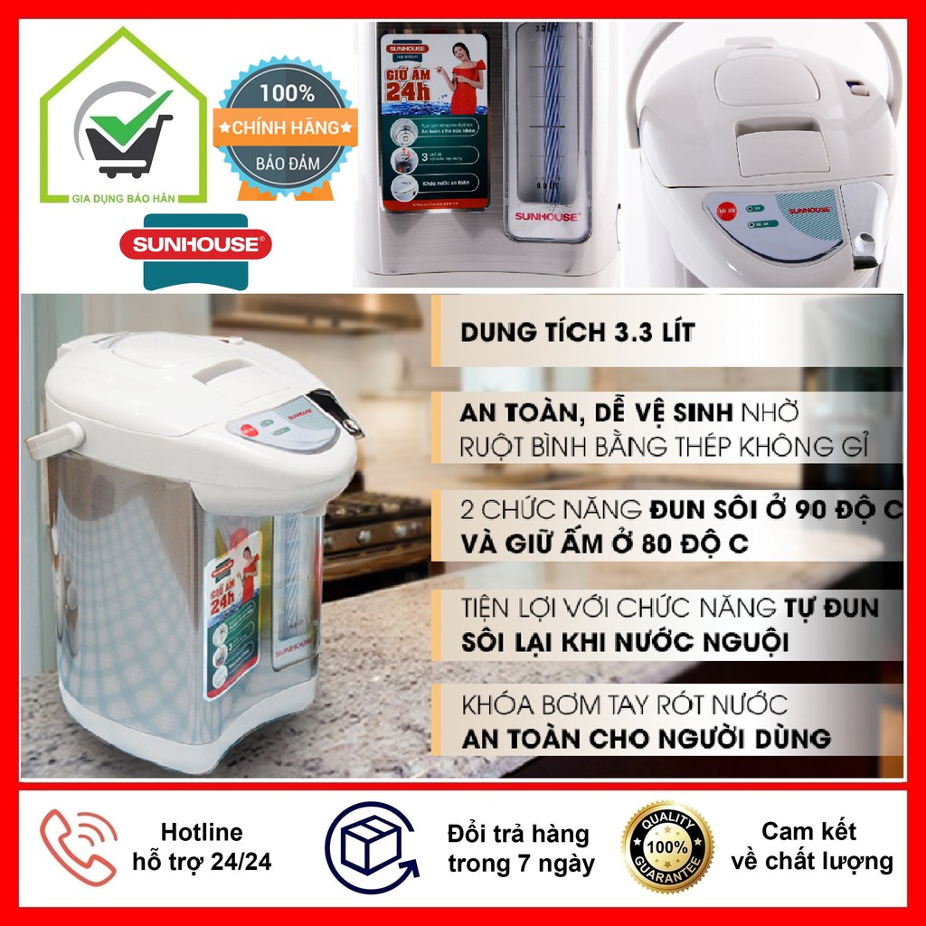 Thiết Bị Điện Gia Dụng > Đồ gia dụng nhà bếp > Ấm đun siêu tốc || [Mã ELHADEV giảm 4% đơn 300K] Bình Thủy Điện SUNHOUSE SHD1533 Dung tích 3.3 Lít - Bảo Hành 12 ThángCòn hàng