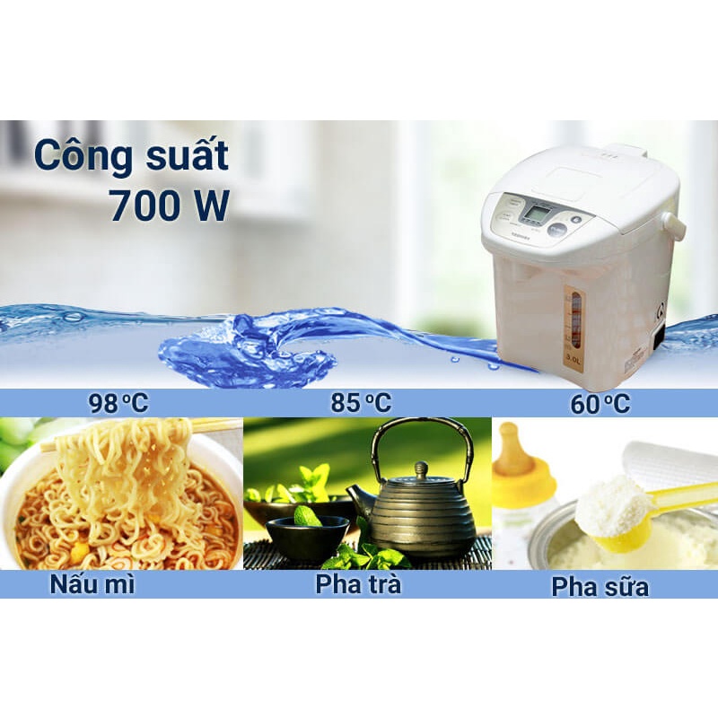 Bình Thủy Điện Toshiba PLK - 30FL (WT) kết hợp cả 2 chức năng đun sôi và giữ ấm tự động, bạn không cần phải mua bình đun nước riêng, bình thủy riêng đồng thời tiết kiệm thời gian và an toàn hơn so với việc đổ nước sôi từ ấm đun nước vào bình thủy.