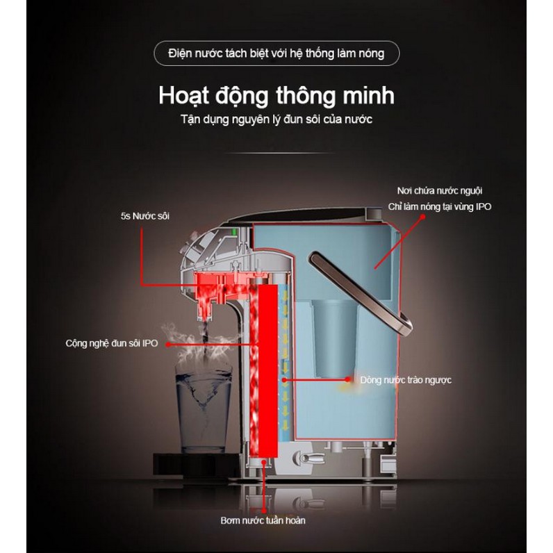 Với dung tích lớn lên tới 2.5 lít rất rộng rãi thỏa mái cho cả một ngày dài sử dụng. Đặc biệt Bình thủy điện còn có thể giữ nhiệt tốt với các mức nhiệt độ khác nhau để bạn luôn có nước nóng sử dụng khi cần thiết.