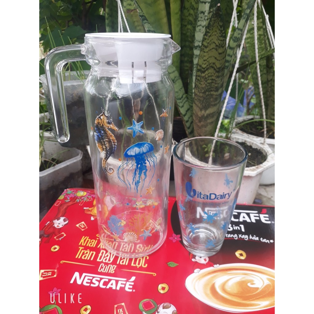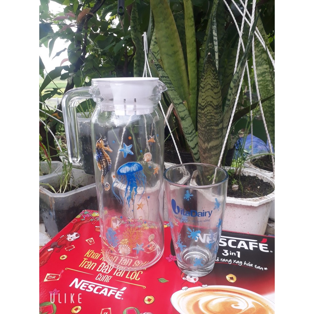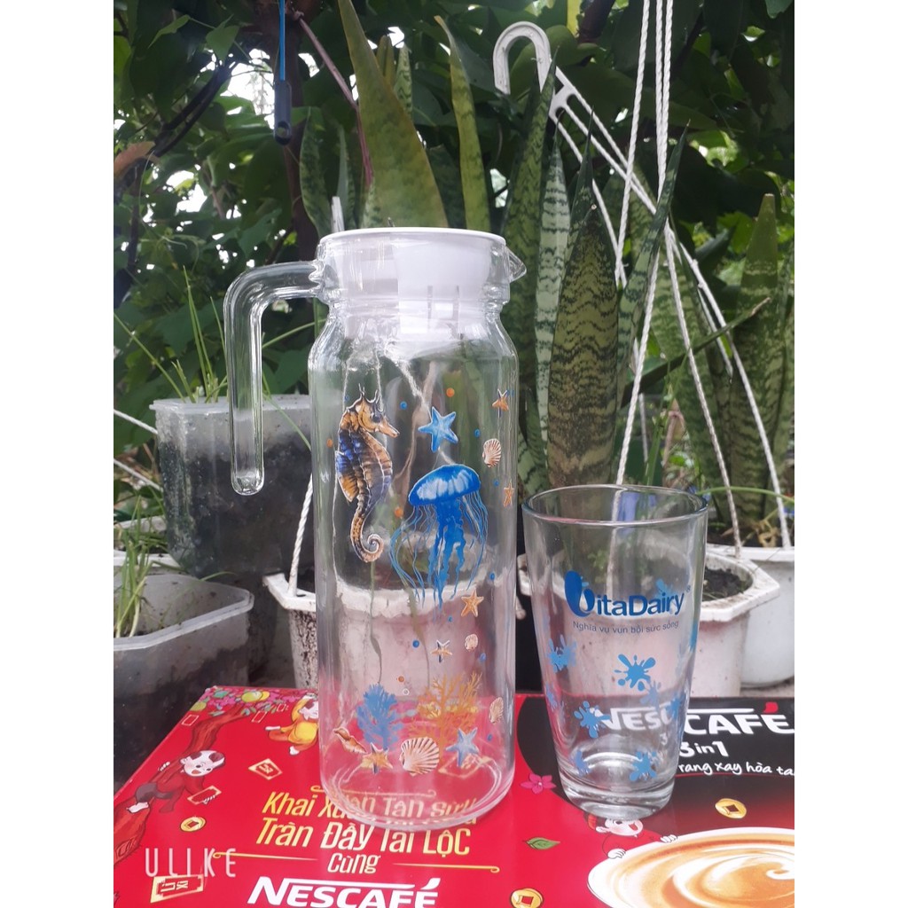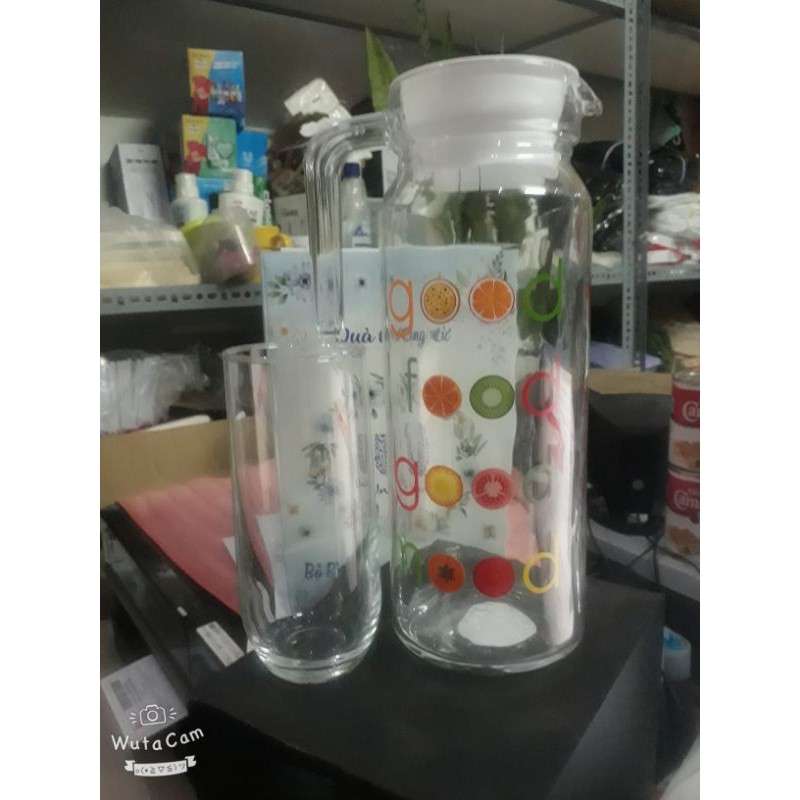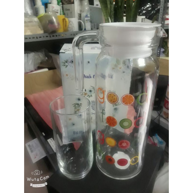 Nhà cửa & Đời sống > Bộ đồ bàn ăn > Bình nước & phụ kiện || BÌNH THỦY TINH 1,1L KÈM 1 LY SIÊU XINHCòn hàng