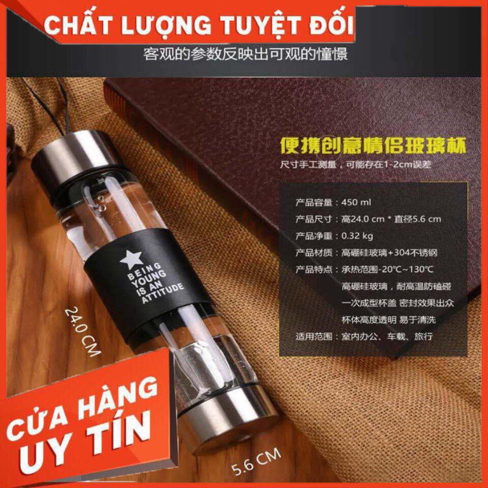 – Bình thủy tinh pha trà có lọc trà 450ml được thiết kế cực kỳ thông minh, dễ sử dụng, là sự kết hợp tuyệt vời giữ bình giữ nhiệt và bộ lọc pha trà. Thân bình làm làm bằng thủy tinh giữ nhiệt cực tốt, bộ lọc pha trà làm bằng inox cao cấp rất bền và an toàn cho sức khỏe. Bình được thiết kế 2 đầu có nắp đạy chống trơn, 01 đầu để uống nước 01 đầu để lắp bộ lọc pha trà hay thảo dược rất tiện dụng.