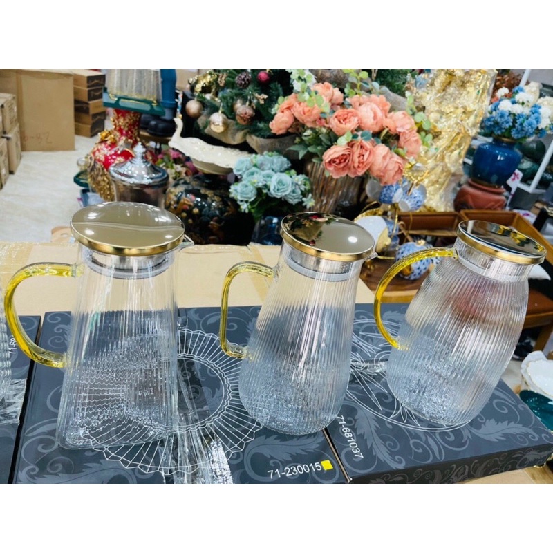 Bình sử dụng chất liệu thủy tinh sáng bóng, tuyệt đối an toàn khi sử dụng. Chất liệu thủy tinh dễ chùi rửa, không gây ám mùi thực phẩm như chất liệu nhựa. Việc vệ sinh chiếc bình sẽ trở nên dễ dàng và nhanh chóng hơn, bảo đảm an toàn vệ sinh, tiện lợi trong việc lựa chọn và sử dụng. Miệng bình tinh xảo, quai màu vàng không dễ mẻ, nứt, bền theo thời gian.