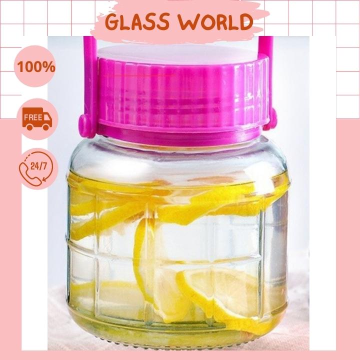 Bình thủy tinh 2L ngâm rượu nắp tím có quai chắc chắn nắp nhựa kín có lỗ mở thử rượu tiện lợi dễ vận chuyển