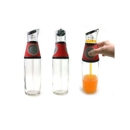 Thiết kế tiện lợi, chỉ cần 1 nút nhất bằng silicon ngay chính giữa bình bạn sẽ có một lượng dầu ăn tùy vào lực ấn mạnh hay nhẹ