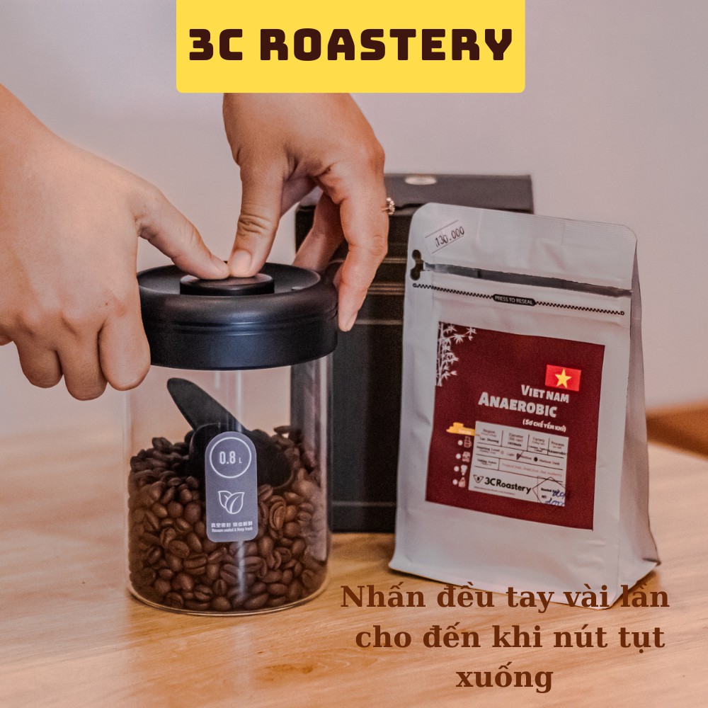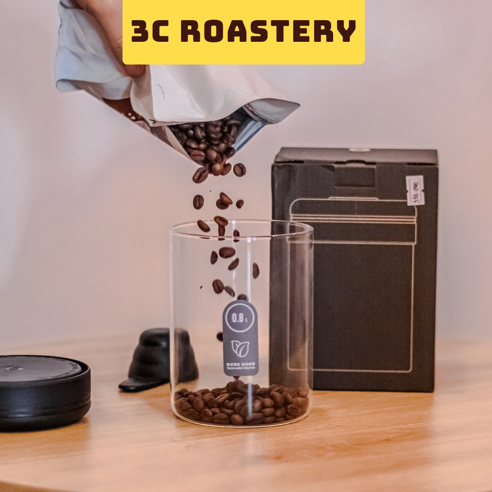 Bình thủy tinh bảo quản cà phê hãng Timemore có van hút chân không dung tích 400ml & 800ml - 3C Roastery