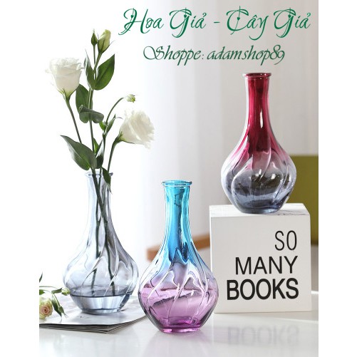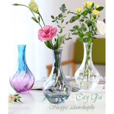 Bình cắm hoa thủy tinh phong cách châu Âu dùng cắm hoa tươi, hoa giả trang trí phòng...Chất thủy tinh mịn với màu sắc trang nhã dễ cắm nhiều loại hoa.