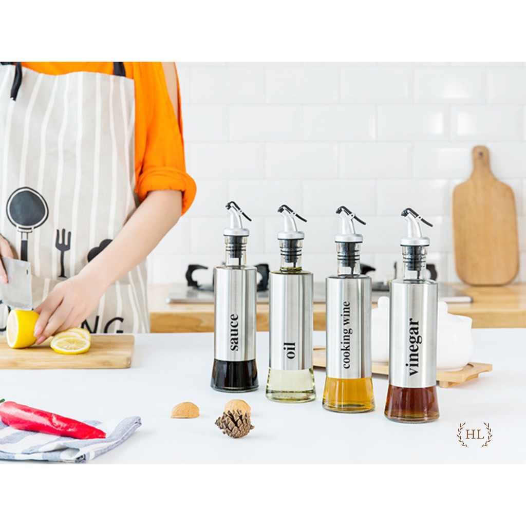 Nhà cửa & Đời sống > Dụng cụ nhà bếp > Dụng cụ đo lường || Bình thủy tinh bọc inox đựng dầu ăn, giấm, nước tương, nước mắm, gia vị...| Chai thủy tinh đựng dầu ăn nhà bếpCòn hàng