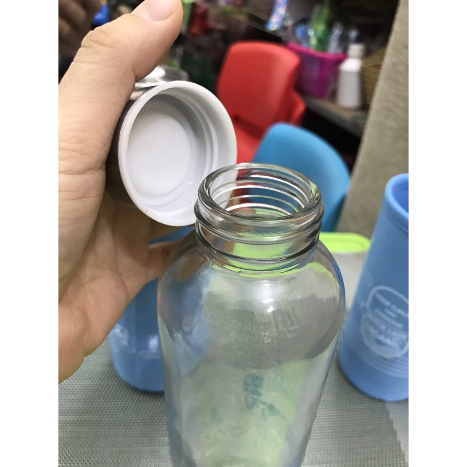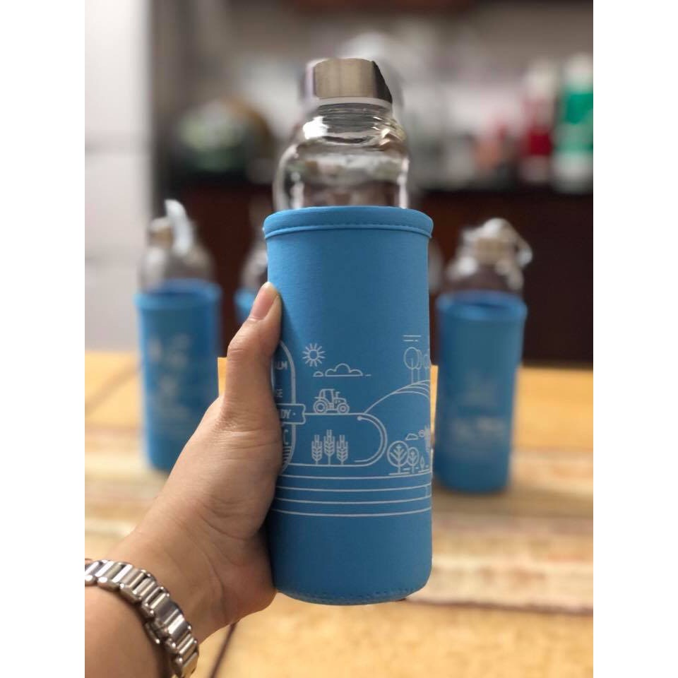 - Chất liệu: thủy tinh + nắp inox + túi giữ nhiệt