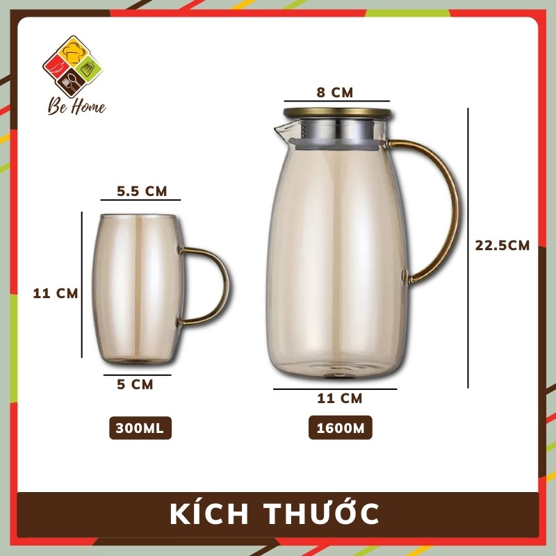 -Thể Tích: Bình 1400ml (cao 210 mm), Ly 250ml (cao 100mm)