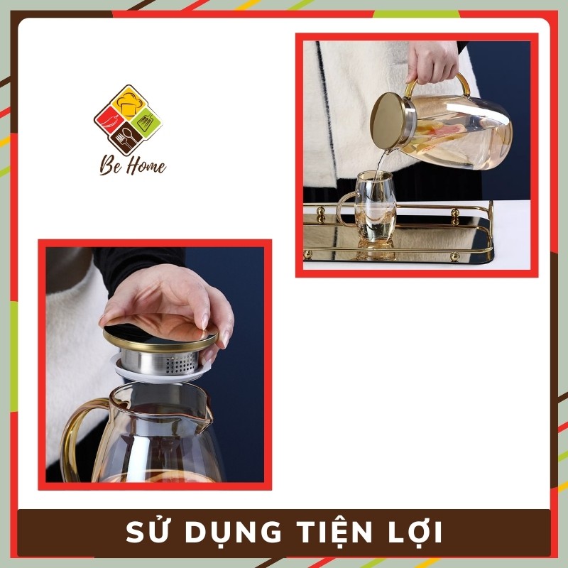 Bình Thủy Tinh Borosilicate BEHOME Bình thủy tinh pha trà Phong Cách Châu Âu Thiết kế sang Trọng Tinh Tế