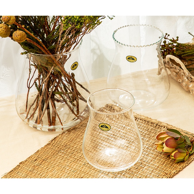 Trụ Loe thủy tinh trang trí có thiết kế dáng bầu, miệng loe rất độc đáo, khác biệt so với những mẫu lọ hoa thông thường. Dòng sản phẩm trụ loe thủy tinh có đường nét tròn, mềm mại mang lại nét thẩm mĩ điệu đà, nữ tính cho không gian trang trí. Một bình hoa cắm hỗn hợp nhiều loại hoa tây khô hoặc cắm lẫn hoa ta theo tông màu trắng, vàng, hồng,...theo ý tưởng sáng tạo của bạn tạo nên nét chấm phá đặc sắc cho tổng thể nội thất.