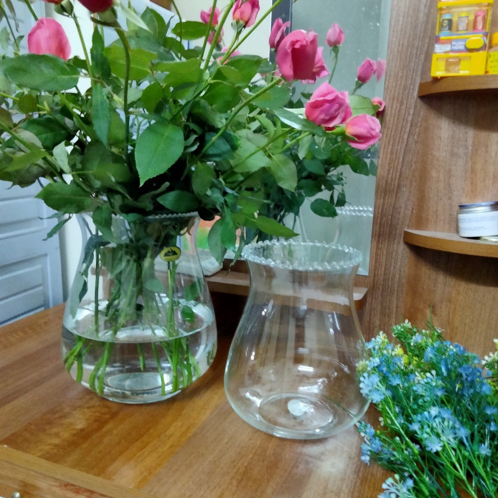 Bình thủy tinh cắm hoa trụ loe ( 03R; 02R)Kích thước 03R: rộng 19; cao 22; trọng lượng 950gr
