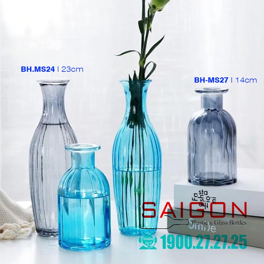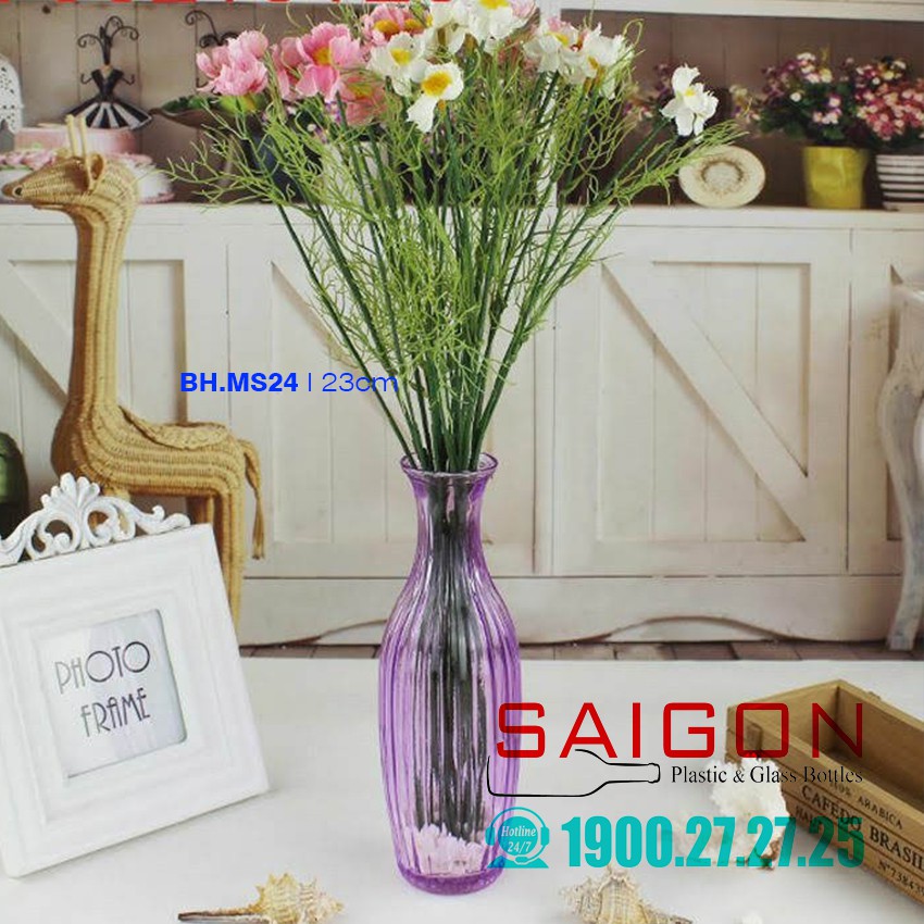 Giới thiệu Binh Thủy tinh Cấm hoa trang trí nhiều màu sắc cao 23.0cm | BH-MS24