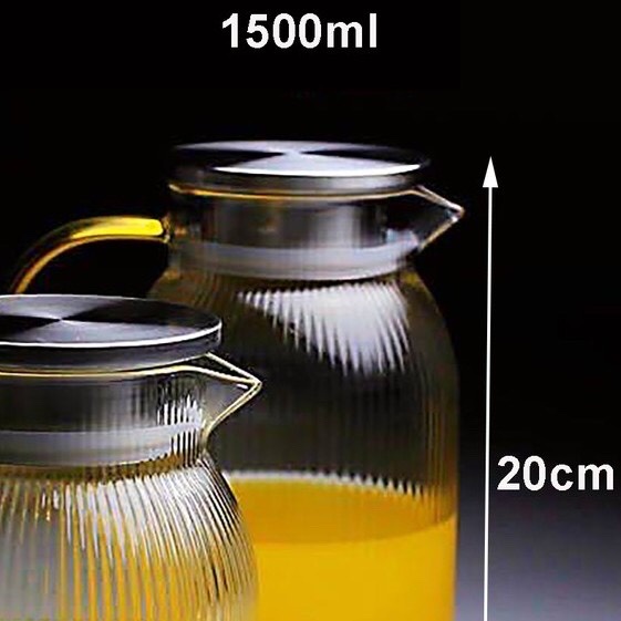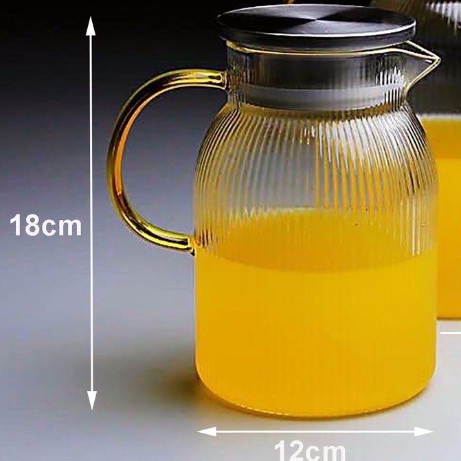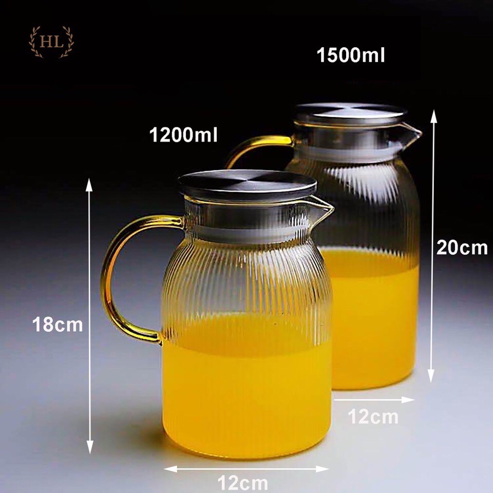 Nhà cửa & Đời sống > Trang trí nhà cửa > Bình trang trí || Bình thủy tinh chịu nhiệt mẫu sọc quai vàng nắp inox HLCòn hàng