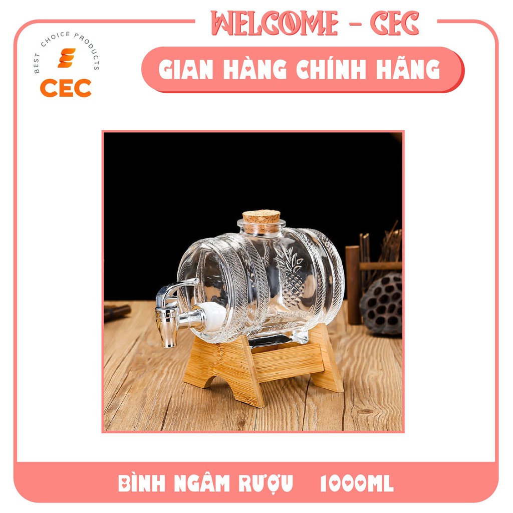 Bình thủy tinh có vòi 1 lít kèm chân đế tre siêu đẹp và sang trọng BN15 [CEC Store]