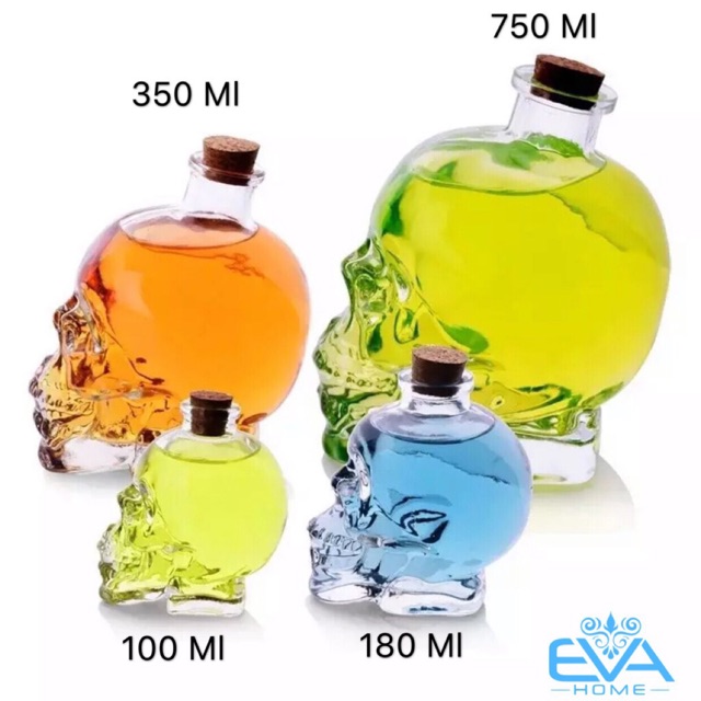 *** Sản phẩm Bình Thuỷ Tinh Kiểu dáng đầu lâu hiện nay Shop có tổng cộng 4 size để bạn có thể lựa chọn: