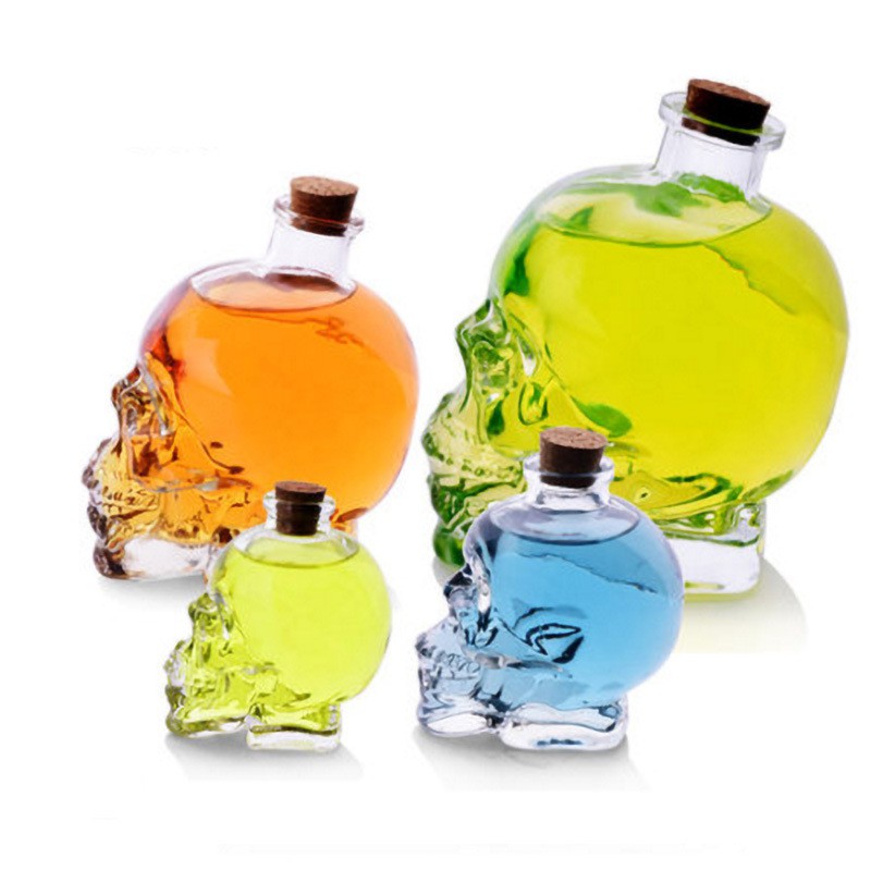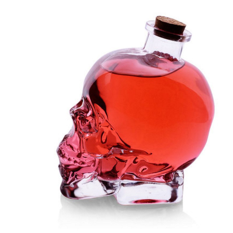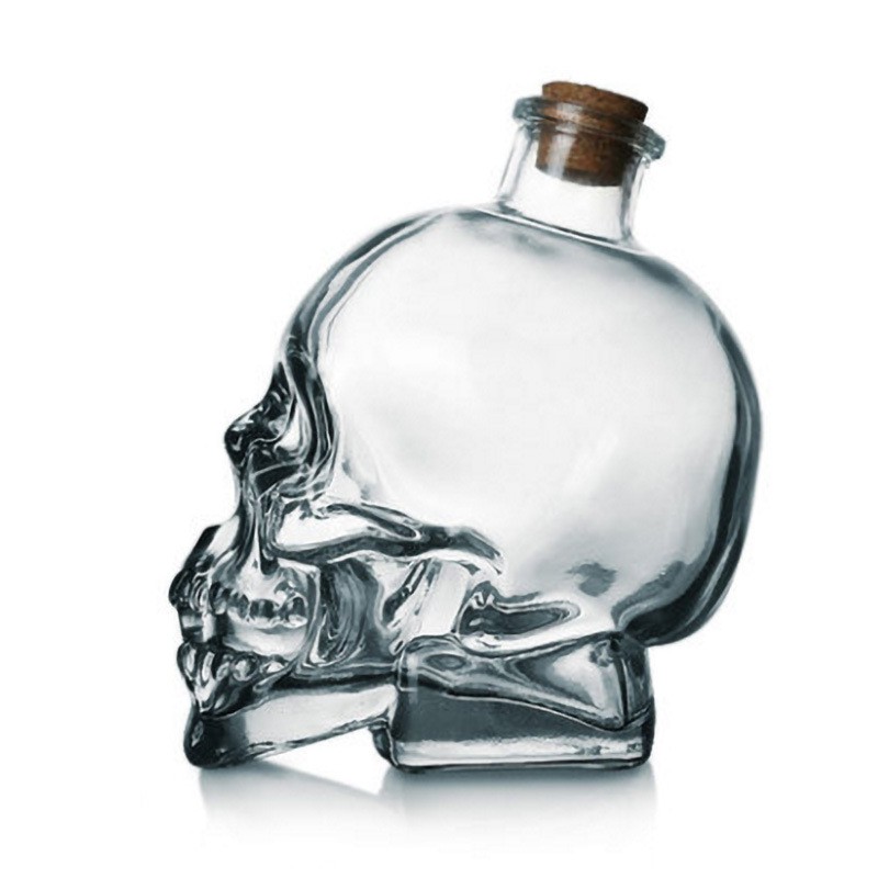Bình thủy tinh đầu lâu sử dụng chất liệu thủy tinh cao cấp, trong suốt. Rất dễ vệ sinh, chùi rửa.