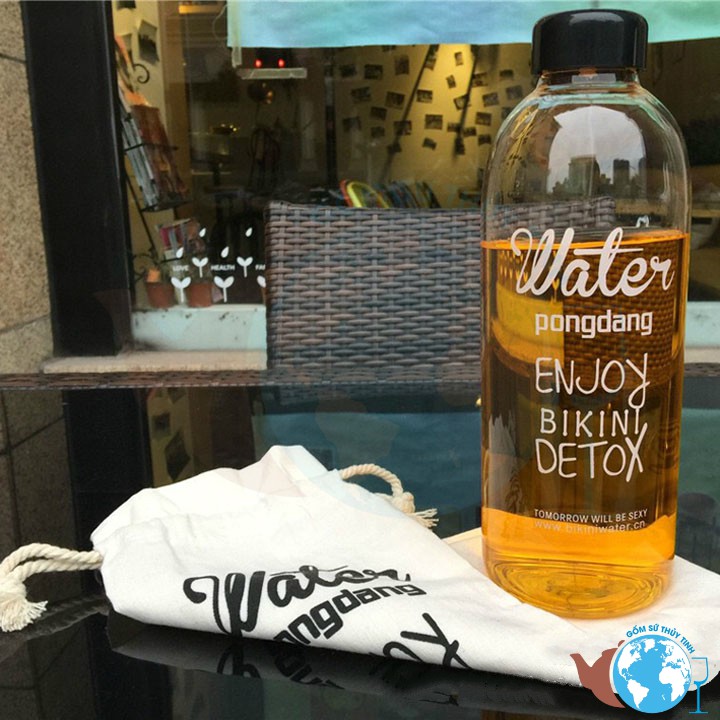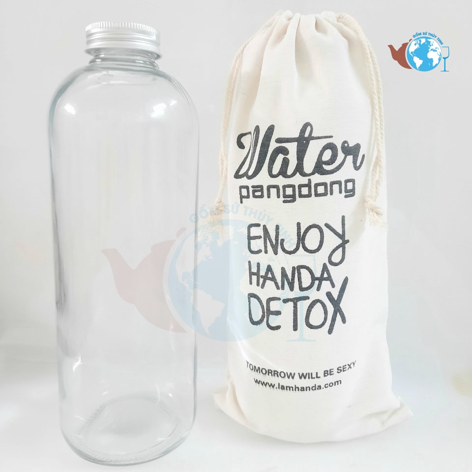 Bình thuỷ tinh DETOX PONGDANG 1000ml CÓ TÚI VẢI