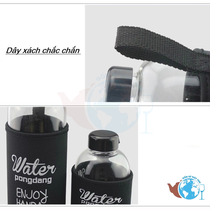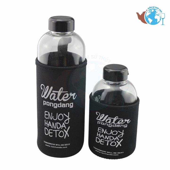 Bình thuỷ tinh DETOX PONGDANG 600ml VỎ BỌC ĐENThông tin sản phẩm chai 600ml