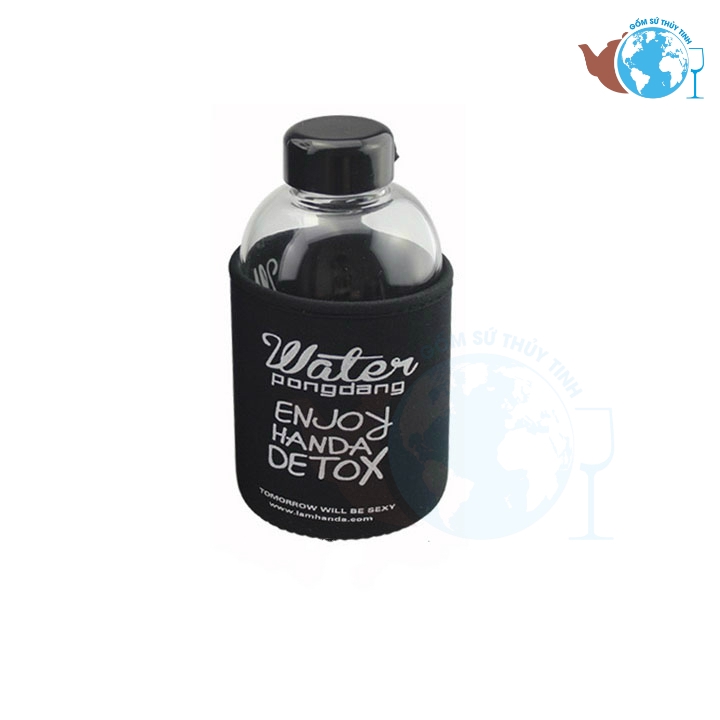 Bình thuỷ tinh DETOX PONGDANG 600ml VỎ BỌC ĐEN