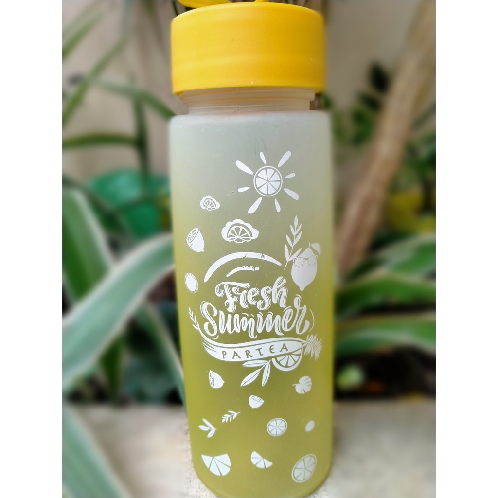 Bình thủy tinh đựng nước 500ml có dây xách màu vàng