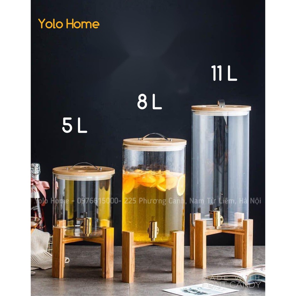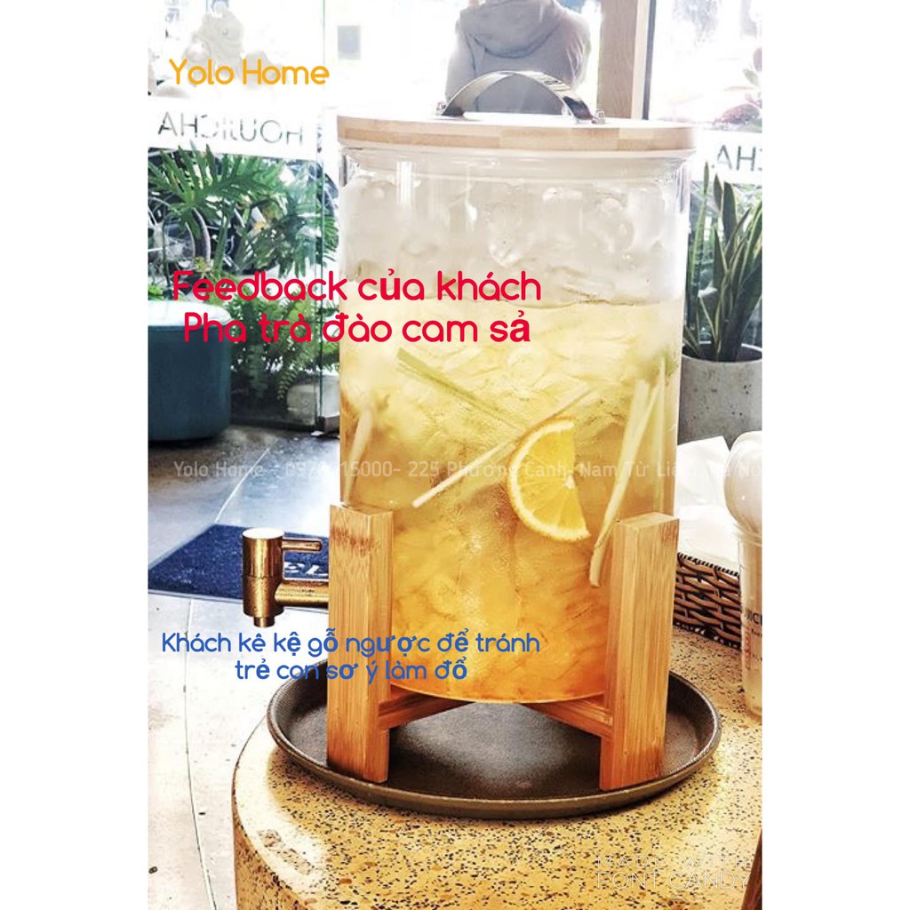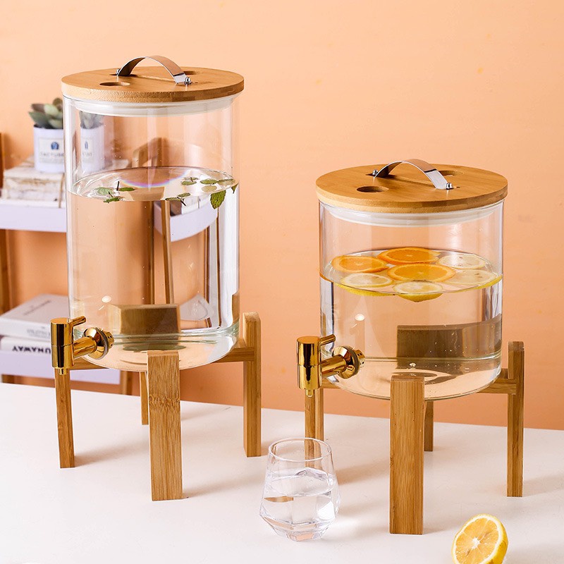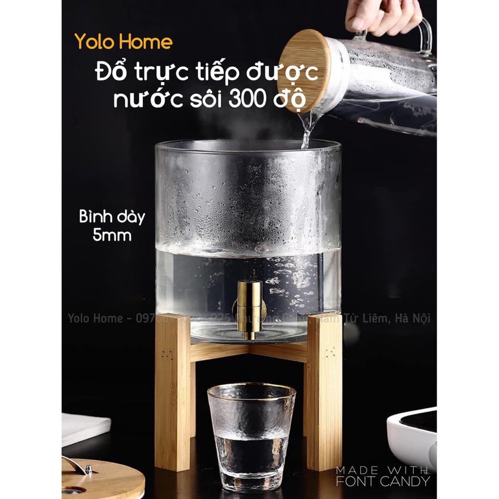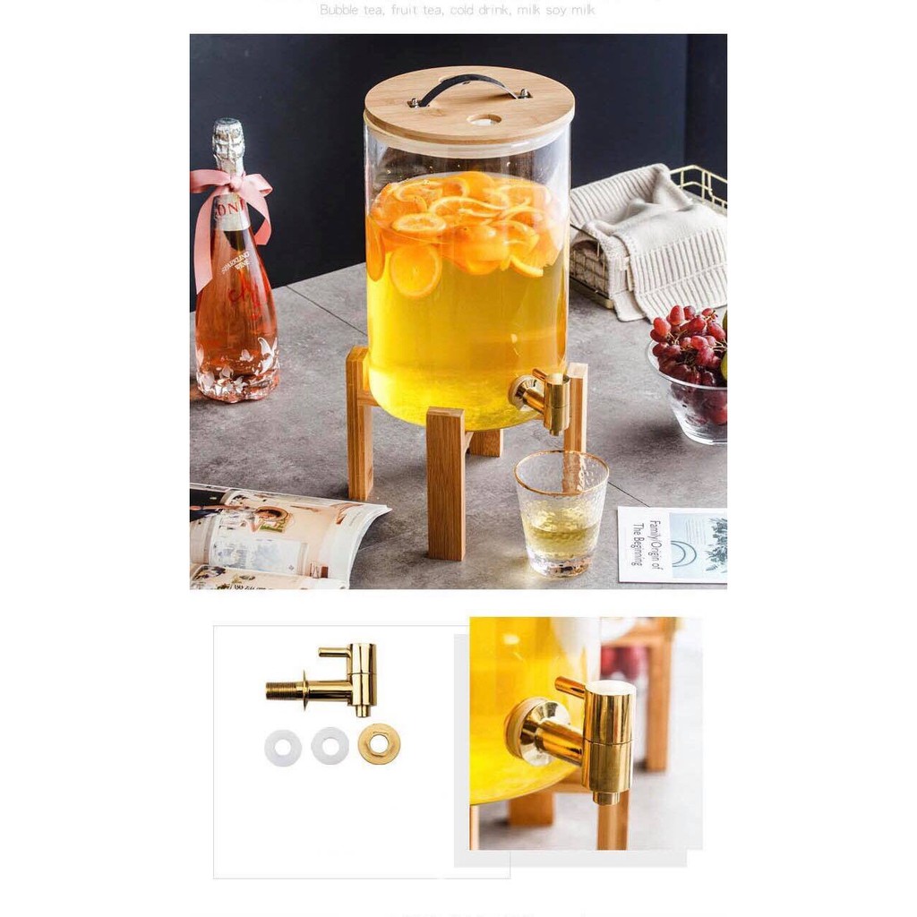 Nhà cửa & Đời sống > Bộ đồ bàn ăn > Bình nước & phụ kiện || Bình thủy tinh đựng nước ♥️𝑪𝑨𝑶 𝑪𝑨̂́𝑷♥️ Bình đựng nước thủy tinh chịu nhiệt có vòi vàng kèm kệ gỗ tiện lợiCòn hàng
