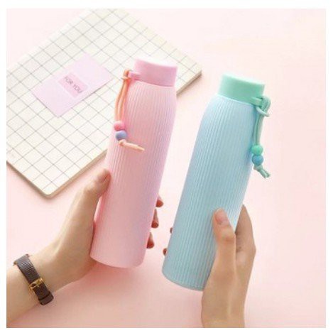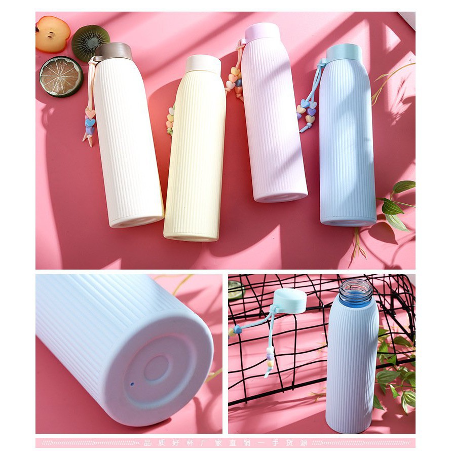 Bình Thủy Tinh Đựng Nước Bọc Vỏ Nhựa Sọc Silicon 320ML Đẹp, Dễ Thương