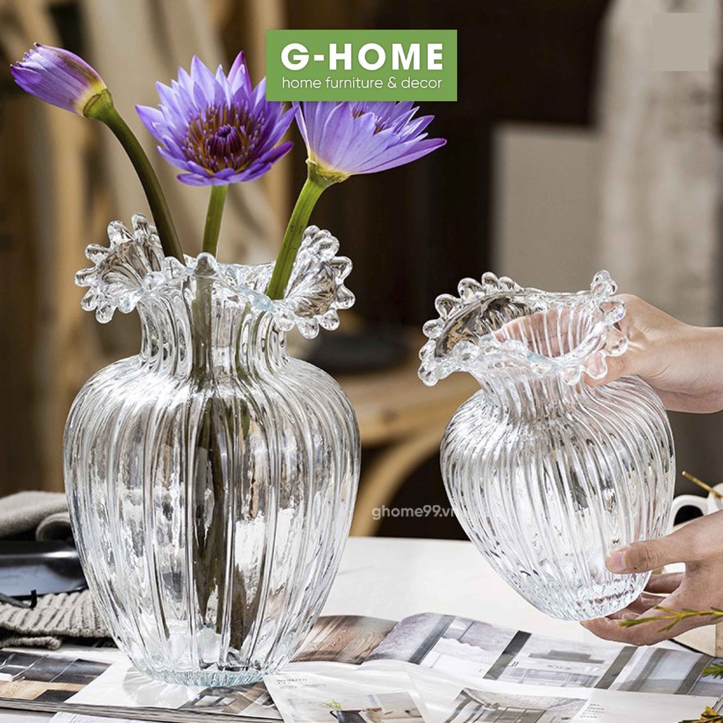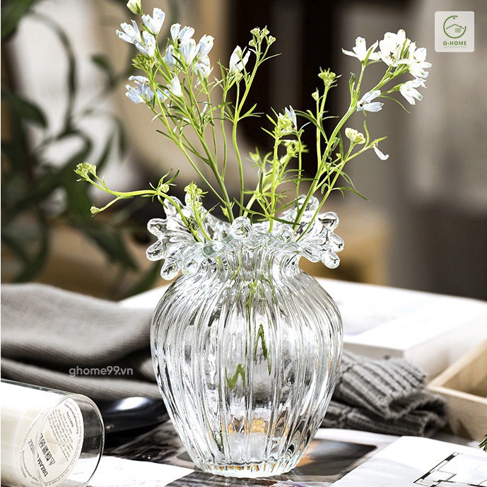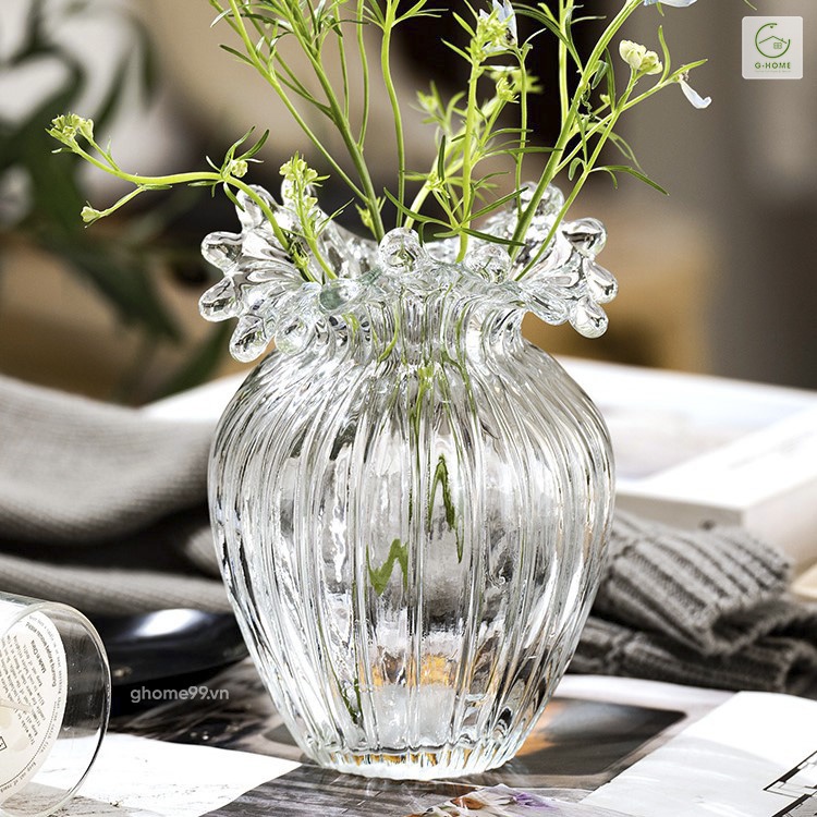 - Thủy tinh với phần viền miệng sáng tạo, màu sắc trơn dễ cắm hoa tươi hoặc ngay cả khi cắm với hoa lụa