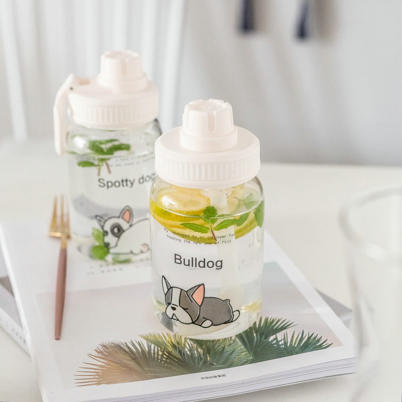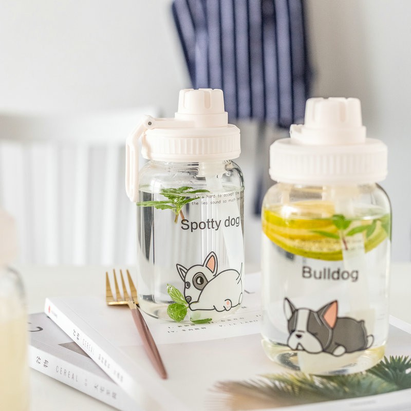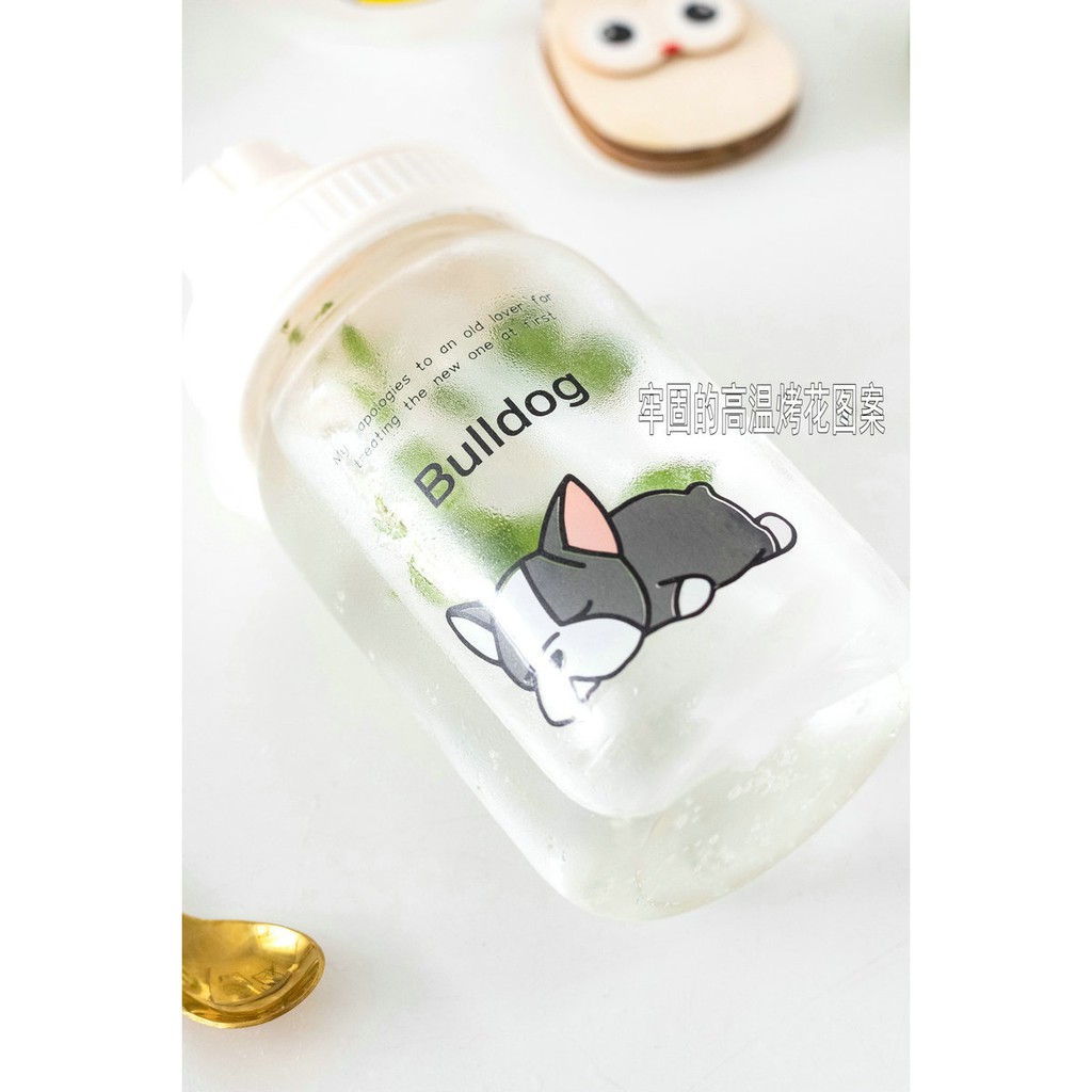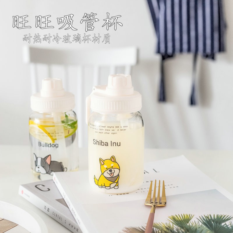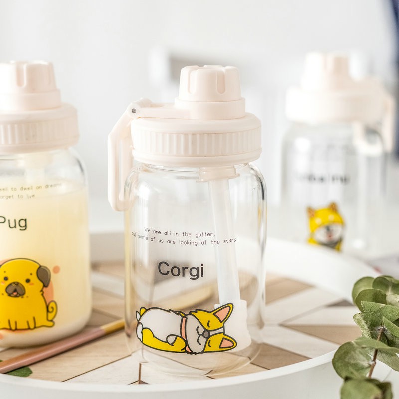 Nhà cửa & Đời sống > Bộ đồ bàn ăn > Bình nước & phụ kiện || Bình thủy tinh in hình các chú chó cute HOT HIT có ống hút tiện dụng 450mlCòn hàng